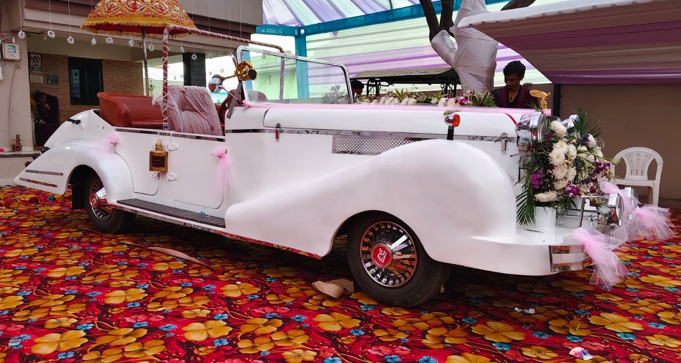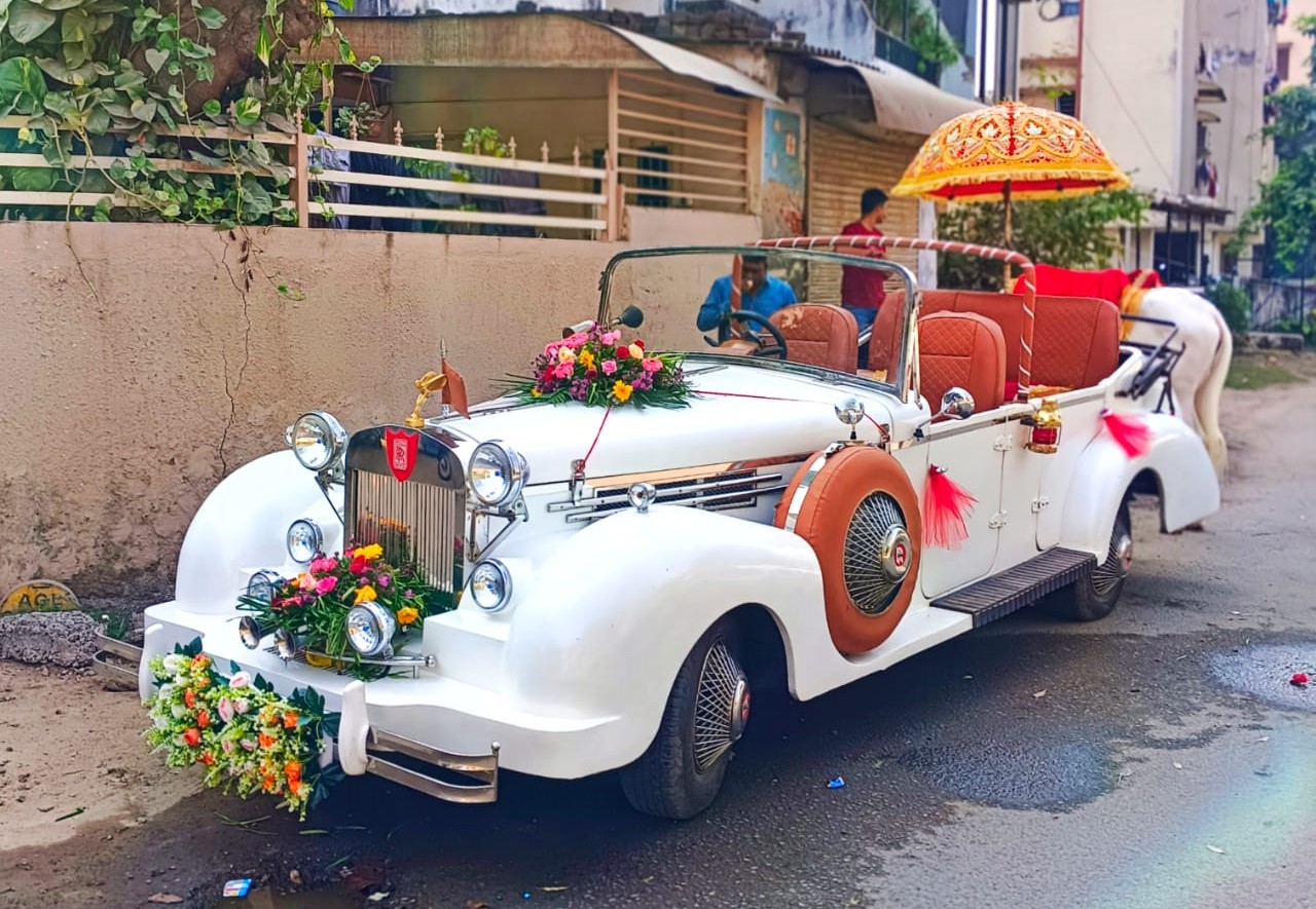 Discover our vintage car packages designed to add royal elegance and timeless charm to your special occasions. Choose from beautifully restored classic cars, perfect for weddings and grand entries, ensuring a luxurious, memorable, and picture-perfect experience for your celebration.